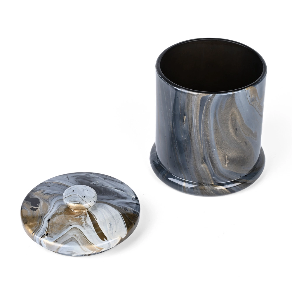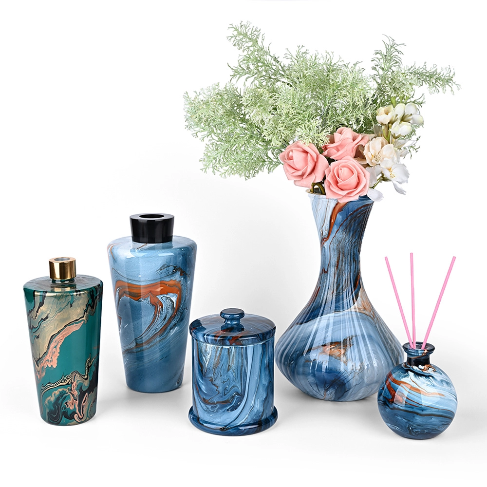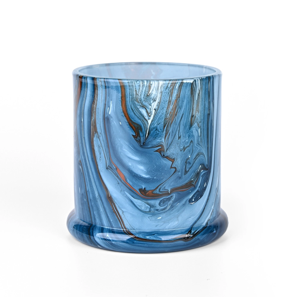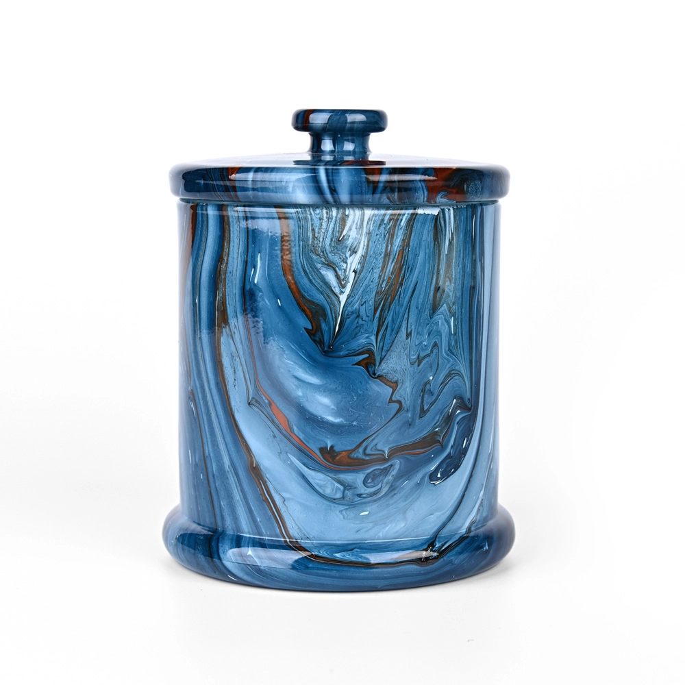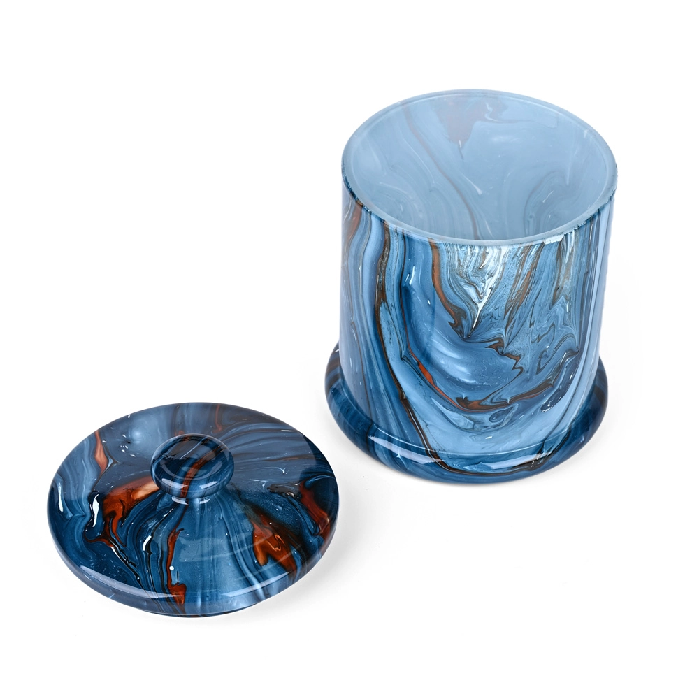 Innovazione artistica: La tecnica della decorazione ad acquerello crea motivi unici e fluidi simili al marmo sui barattoli di vetro delle candele Premium, offrendo un'eleganza visiva senza pari.