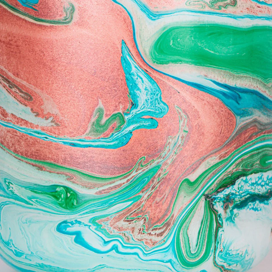 Cada xícara é pintada à mão por artesãos, apresentando designs que incluem flores naturais, geometria abstrata e ilustrações suaves. As cores são vibrantes e duráveis.