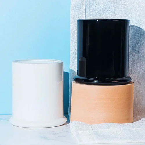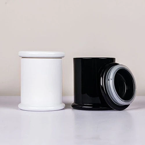 Fábrica de potes de velas de cerâmica impressos personalizados apresenta peças confeccionadas em cerâmica queimada em alta temperatura, com textura quente e resiliente, superfície lisa e delicada e toque confortável. O design de duas cores em preto e branco continua a estética minimalista, apresentando um estilo artístico moderno através da interação de luz e sombra, adicionando uma atmosfera elegante a qualquer espaço
